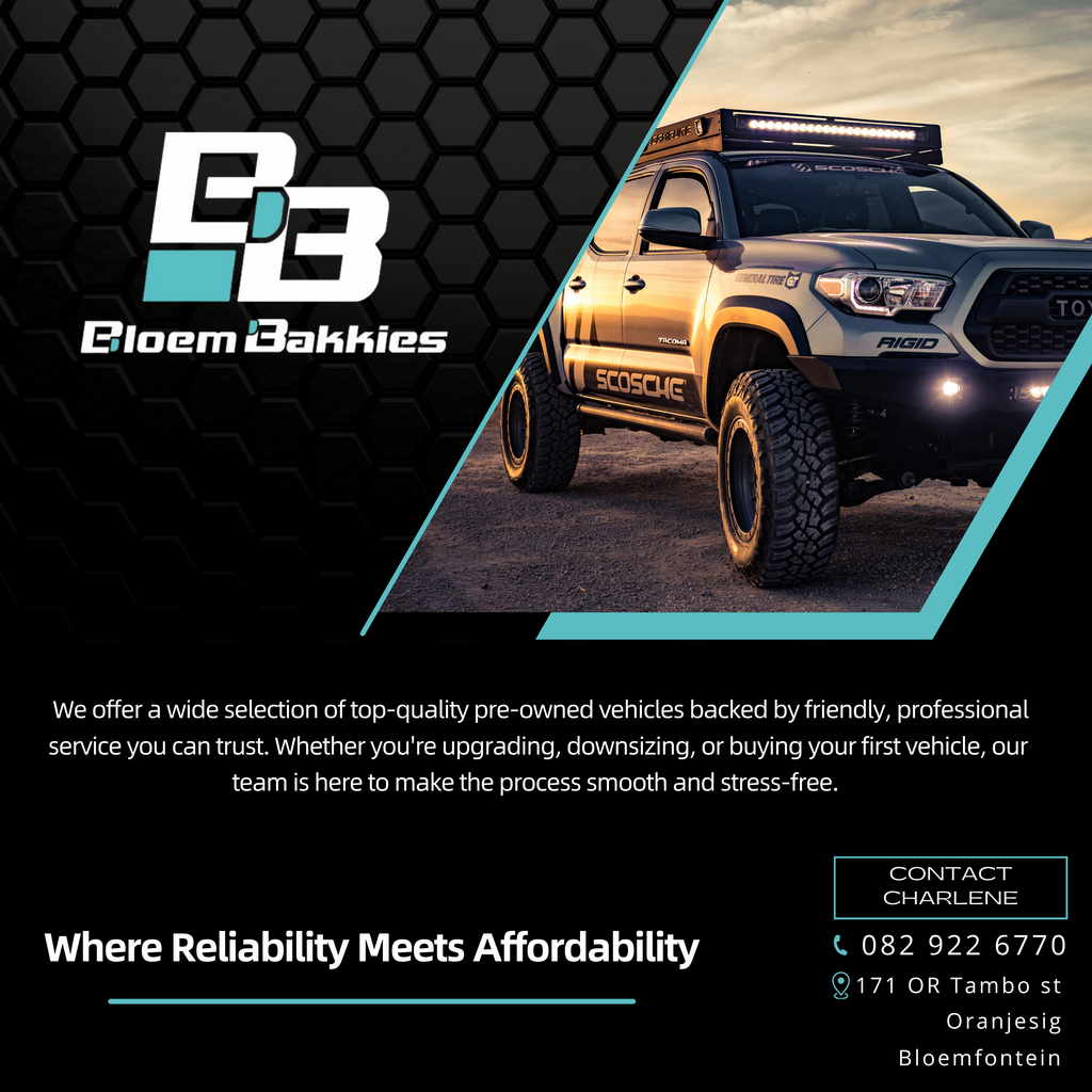 At Bloem Bakkies, we pride ourselves on offering quality used vehicles that meet the highest standards. Our dedicated team is committed to providing excellent customer service, ensuring a seamless buying experience. Located in Bloemfontein, our dealership is here to help you find the perfect car.